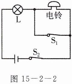 2. 李泉实验时连接了如图15 - 2 - 2所示的电路,闭合开关S₁和S₂后,下列分析正确的是( )