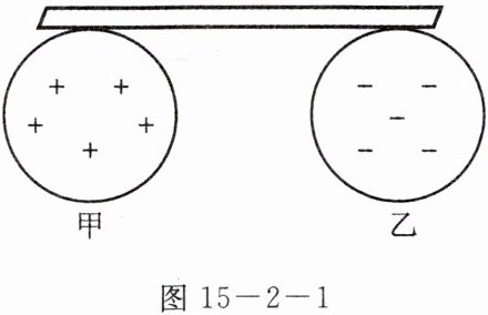 1. 如图15 - 2 - 1所示,有两个金属球,甲带大量正电荷,乙带大量负电荷,用铜棒连接两球,则( )