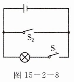 17. 如图15 - 2 - 8,当开关S₁、S₂断开时,电路处于________状态;当开关S₁闭合、S₂断开时,电路处于________状态;当开关S₁、S₂都闭合时,电路处于________状态.
