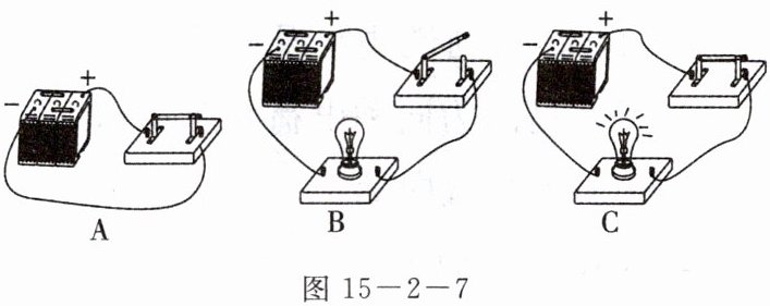 14. 图15 - 2 - 7是三个电路的实物图,通路是________;短路是________;断路是________.