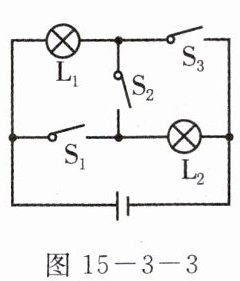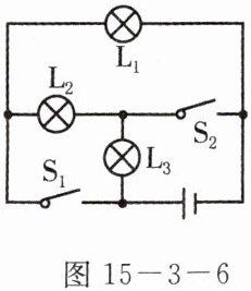 10. 在如图15 - 3 - 6所示的电路中,当开关S₁、S₂断开时,L₁、L₂、L₃是_______联;当开关S₁、S₂闭合时,L₁、L₂、L₃是_______联.