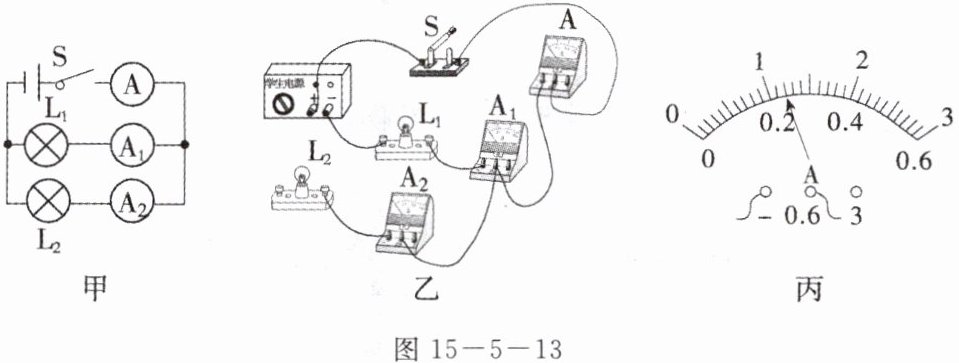 (1)他们按如图15 - 5 - 13甲的电路图连接电路,在图乙的实物图中还差一根导线没有连接,请在图中画出该条导线.