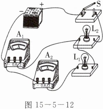 15. 在“用电流表测电流”的实验中,某同学连接的电路如图15 - 5 - 12所示.