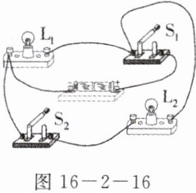 18. 关于如图16 - 2 - 16所示的实物电路,在S₁、S₂都闭合后,下列说法正确的是( )