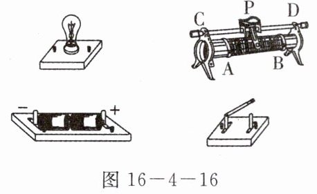 19. 用笔画线代替导线,将图16 - 4 - 16中元件连接成电路,要求:向右移动滑片,灯泡变亮.
