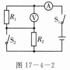 2. 如图17 - 4 - 2所示,电源电压恒定. 闭合开关S₁、S₂,电压表示数为9 V,电流表示数为1.5 A;断开开关S₂,电压表示数为6 V,则R₁和R₂的阻值分别是 ( )