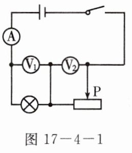 1. 在图17 - 4 - 1所示的电路中,当开关闭合后,滑动变阻器滑片P向右移动时,对电表读数的变化,分析正确的是 ( )