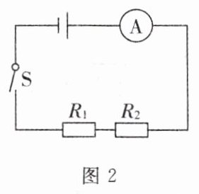 2. 如图2所示,电源两端电压为3 V,$R_1 = 5\Omega$. 闭合开关S,电流表示数为0.1 A,下列说法正确的是 ( )