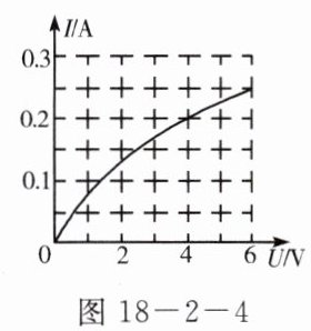 10. 标有“6V 1.5W”的小灯泡,通过它的电流随两端电压变化的关系如图18 - 2 - 4所示,若把这样的三只灯泡串联起来,接在12V的电源两端,灯泡的电阻及实际功率约为( )