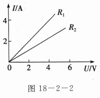 8. 图18 - 2 - 2是表示阻值不同的两个电阻的电流随电压变化的$I - U$图像,从图中可知$R_1$_______$R_2$,若将$R_1$、$R_2$串联接在电源上,则实际电功率$P_1$_______$P_2$.