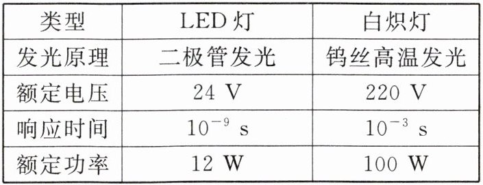 (1)由表中给出的信息知道:LED灯和白炽灯的发光原理是_______(选填“相同”或“不相同”)的;