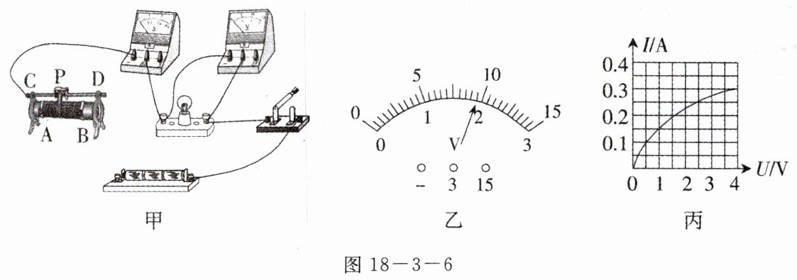 (2)用笔画线代替导线,将图18 - 3 - 6甲的实验电路连接完整(要求滑动变阻器的滑片P向B端移动时电流表的示数变大);