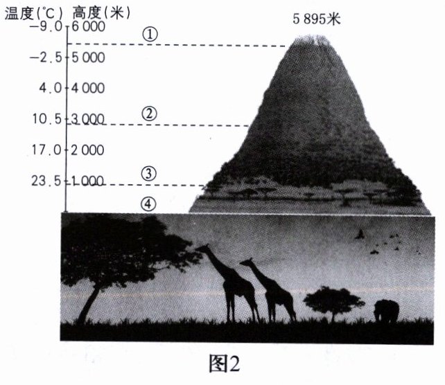 读图2“非洲某山地海拔及山麓地带自然景观示意图”,回答4~6题。