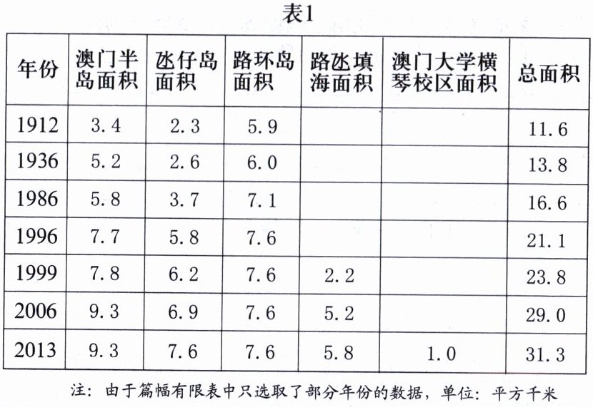 (1)澳门通过填海造陆使其陆地面积由1912年的8__________________增填至2013年的__________________