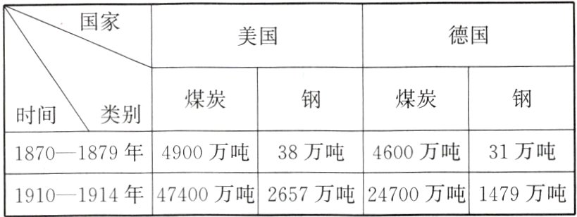 17. 分析下面美国和德国的煤炭、钢产量变化表,我们可以得出的结论是( )