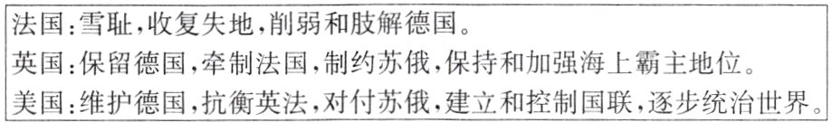 14. 以下是操纵巴黎和会的三个国家的意图。这说明( )