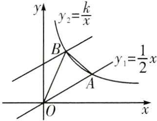 (2)把直线$y_1=\frac{1}{2}x$向上平移3个单位长度与$y_2=\frac{k}{x}(x>0)$的图象交于点$B$,连接$AB$、$OB$,求$\triangle AOB$的面积.
