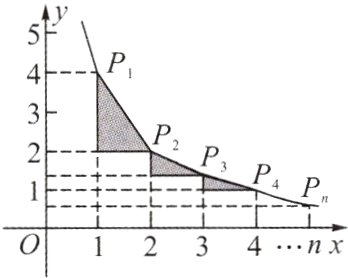 3. 如图,在反比例函数$y = \frac{4}{x}(x > 0)$的图象上,有点$P_{1}$,$P_{2}$,$P_{3}$,$P_{4}$,$\cdots$,$P_{n}$($n$为正整数,且$n\geqslant1$),它们的横坐标依次为$1$,$2$,$3$,$4$,$\cdots$,$n$($n$为正整数,且$n\geqslant1$). 分别过这些点作$x$轴与$y$轴的垂线,连接相邻两点,图中所构成的阴影部分的面积从左到右依次为$S_{1}$,$S_{2}$,$S_{3}$,$\cdots$,$S_{k - 1}$($k$为正整数,且$k\geqslant2$),那么$S_{1}+S_{2}+S_{3}=$____________,$S_{1}+S_{2}+S_{3}+S_{4}+\cdots+S_{k - 1}=$____________.(用含有$k$的代数式表示)
