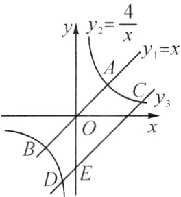 (2)将直线$y_{1}=x$向下平移$3$个单位长度得到直线$y_{3}$,与反比例函数的图象交于点$C$,点$D$,与$y$轴交于点$E$,当$y_{3}<y_{2}<y_{1}$时,求$x$的取值范围.