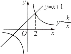 5. 如图,一次函数$y = x + 1$的图象与反比例函数$y = \frac{k}{x}$的图象相交,其中一个交点的横坐标是$2$.