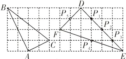 4.如图,在边长为1的小正方形组成的网格中,△ABC和△DEF的顶点都在格点上,P1,P2,P3,P4,P5是△DEF边上的5个格点,请按要求解答下列各题:
