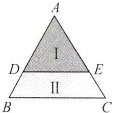 ∵平行于BC的直线DE把△ABC分成面积相等的两部分,