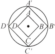 4.【数学文化】【推理能力】(2022·潍坊)《墨子·天志》记载:“执规矩,以度天下之方圆.”度方知圆,感悟数学之美. 如图,正方形$ABCD$的面积为4,以它的对角线的交点为位似中心,作它的位似图形$A'B'C'D'$,若$A'B':AB = 2:1$,则四边形$A'B'C'D'$的外接圆的周长为________.