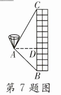 7.(2024·绥化)如图,用热气球的探测器测一栋楼的高度,从热气球上的点A测得该楼顶部点C的仰角为60°,测得底部点B的俯角为45°,点A与楼BC的水平距离AD = 50 m,则这栋楼的高度为 ____________ m(结果保留根号)。