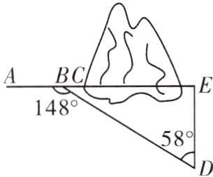 5.(2024·洛阳市汝阳县一模改编)如图,沿AC的方向开山修路,为了加快速度,要在小山的另一边同时施工,从AC上取一点B,取∠ABD = 148°,已知BD = 600米,∠D = 58°,点A,C,E在同一直线上,那么开挖点E离点D的距离是多少米?