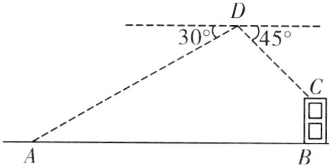 9.(2024·呼伦贝尔)综合实践活动中,数学兴趣小组利用无人机测量大楼的高度。如图,无人机在离地面40米的D处,测得操控者A的俯角为30°,测得楼BC楼顶C处的俯角为45°,又经过人工测量得到操控者A和大楼BC之间的水平距离是80米,则楼BC的高度是多少米?(点A,B,C,D都在同一平面内,参考数据:$\sqrt{3}\approx1.7$)