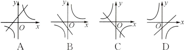 11.【教材九下P9习题T8变式】在同一平面直角坐标系中,一次函数y=kx-1与反比例函数$y=\frac{k}{x}(k\ne0)$的图象的形状大致是( )
