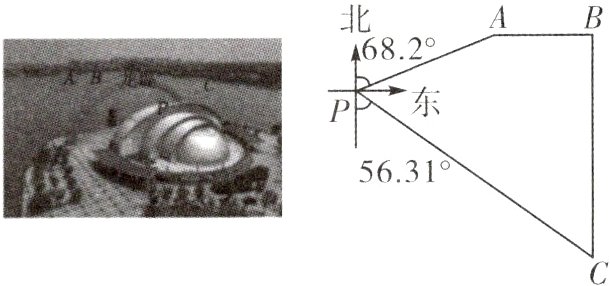 在Rt△PCE中,$\tan C=\tan56.31^{\circ}=\frac{PE}{CE}$,