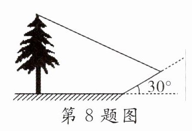 8.小明想测量一棵树的高度,他发现树的影子恰好落在地面和斜坡上,如图,此时测得地面上的影长为8 m,坡面上的影长为4 m.已知斜坡的坡角为30°,同一时刻,一根长为1 m,且垂直于地面放置的标杆在地面上的影长为2 m,则斜坡上树影顶端到地面的距离为____m,树的高度为__________m.(结果保留根号)