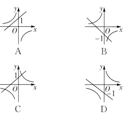 1.(滨州中考)在同一平面直角坐标系中,函数y=kx+1与$y=-\frac{k}{x}$(k为常数且k≠0)的图象大致是( )