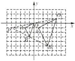 13.(10分)在如图所示的方格纸中,△OAB的顶点坐标分别为$O(0,0),A( - 2, - 1),B( - 1, - 3),△O_{1}A_{1}B_{1}$与△OAB是以点P为位似中心的位似图形.在图中标出位似中心P的位置,并写出点P及点B的对应点$B_{1}$的坐标.