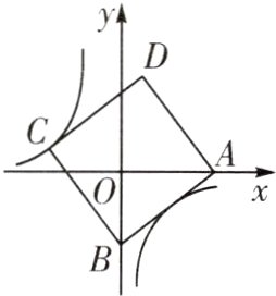 11. 如图,正方形ABCD的边长为5,点A的坐标为$(4,0)$,点B在y轴上. 若反比例函数$y = \frac{k}{x}(k \neq 0)$的图象过点C,则k的值为________.