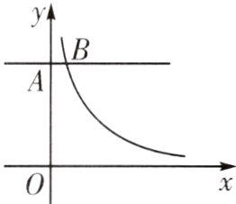 8. 如图,在平面直角坐标系中,过点$A(0,4)$且平行于x轴的直线交双曲线$y = \frac{2}{x}$于点B,则$AB$ = ________.