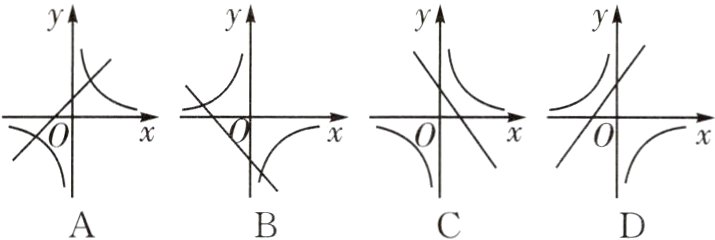 5. 若$ab > 0$,则一次函数$y = ax - b$与反比例函数$y = \frac{ab}{x}$在同一平面直角坐标系中的大致图象是( )