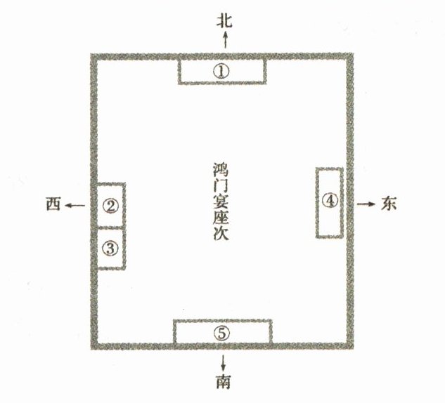 (1) 填写“鸿门宴”人物座次图,并说明尊卑方位。
