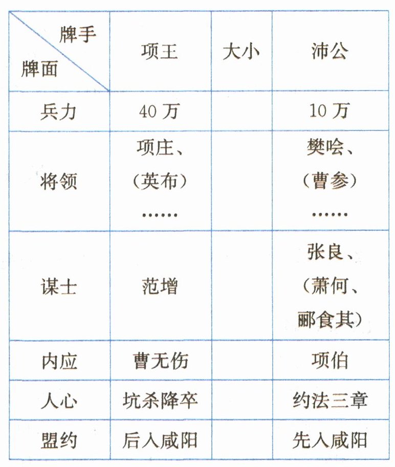 公元前206年,鸿门棋牌室迎来了两位著名的牌友,26岁的新手项羽和50岁的老手沛公。根据你的阅读,完成以下两项任务。