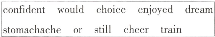1. still 2. would 3. confident 4. stomachache 5. choices 6. or 7. cheering 8. dream 9. trained 10. enjoyed