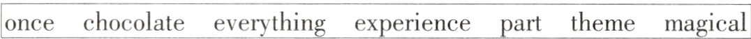 1. chocolate 2. magical 3. part 4. once 5. everything 6. theme 7. experience