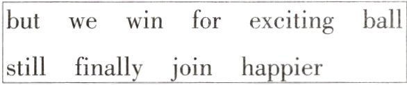1. won 2. exciting 3. joined 4. but 5. for 6. still 7. ball 8. our 9. finally 10. happier