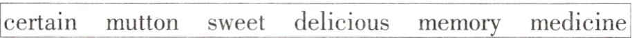 1. sweet 2. certain 3. medicine 4. mutton 5. memory 6. delicious