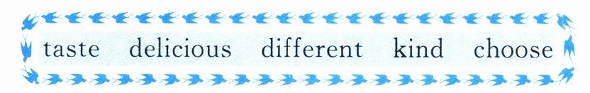 1. kind 2. tastes 3. delicious 4. different 5. choose