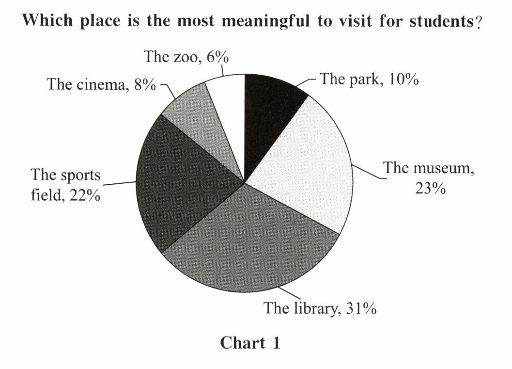 Most students believe their experiences of visiting different places make a difference to their lives. They not only bring them a lot of fun, but also help them open up their eyes. They usually go to the sports field to exercise and reduce stress. It can make them happier and stronger. And they also go to the library to read books for relaxation. As for the museum, they say that they can learn more in different fields. We can learn more about the survey from the following charts.