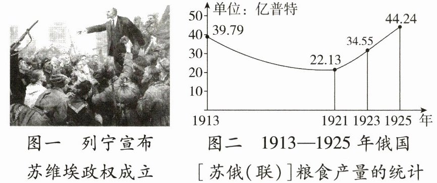 (2)根据图二,概括1913—1925年粮食产量的变化趋势。结合所学知识,指出导致1921—1925年变化趋势出现的政策因素。(3分)