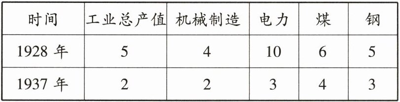材料二 1928—1937年苏联工业总产值及重要工业产品在世界所占的地位。