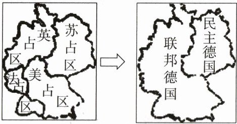 4. 右图所示“二战”后德国的地图变化,标志着 ( )