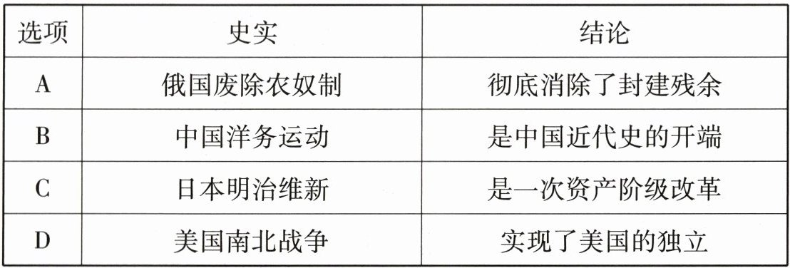9. 19世纪六七十年代,为顺应时代潮流,世界上许多国家不约而同地进行了改革或革命。某班同学对此进行了探究并得出结论,下列史实与结论对应正确的是 ( )